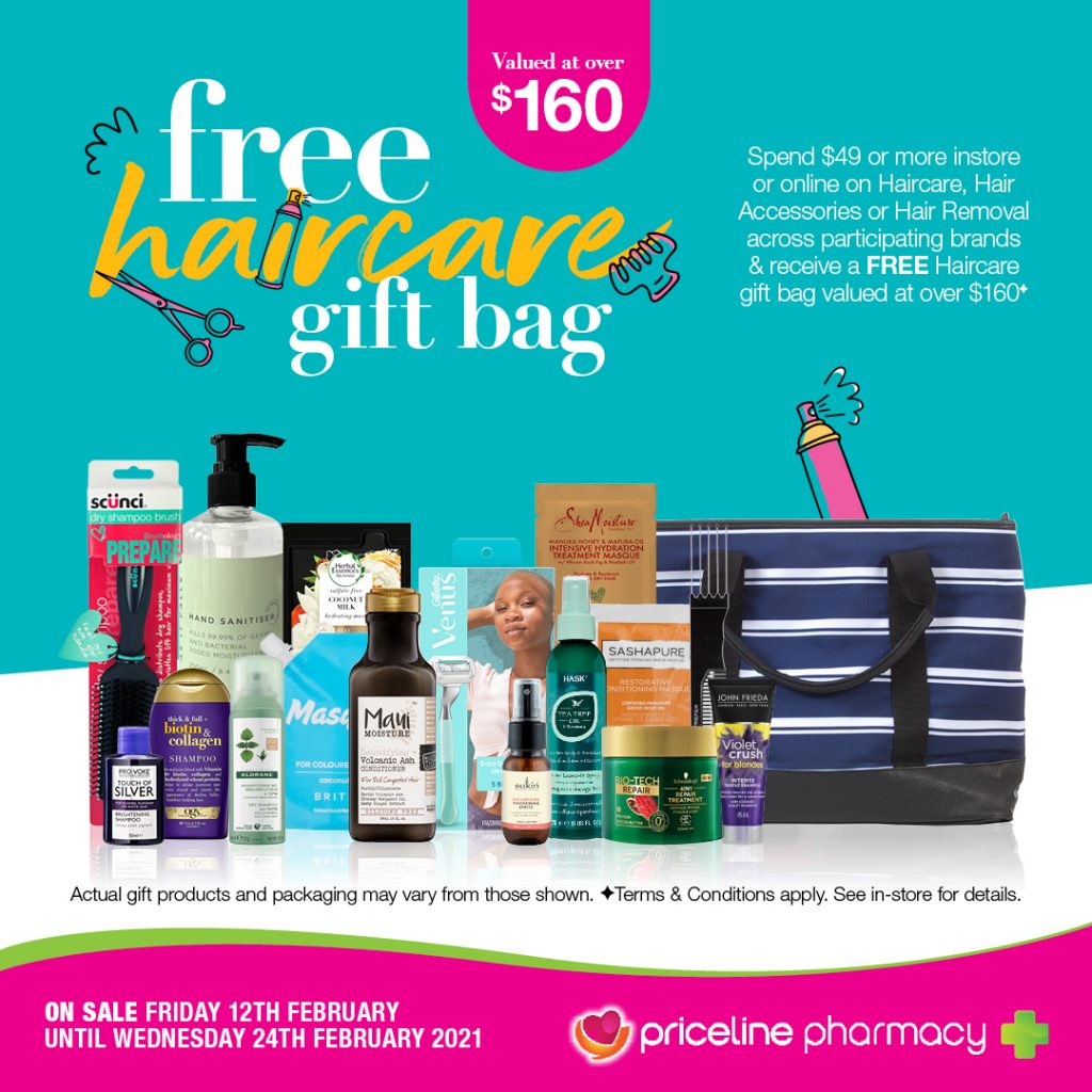 Plus, receive a free haircare gift bag valued at over $160 when you spend $49 on Haircare, Hair Accessories, or Hair Removal across participating brands.